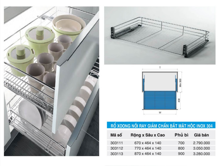 Rổ Xoong Nồi Ray Giảm Chấn Bắt Mặt Hộc Inox 304 Higold 303112