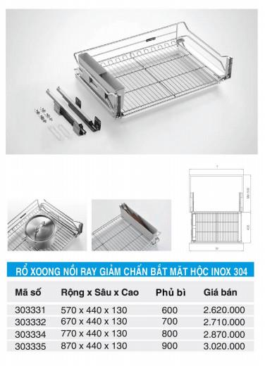 Rổ xoong nồi ray giảm chấn bắt mặt hộc inox 304 Higold 303331
