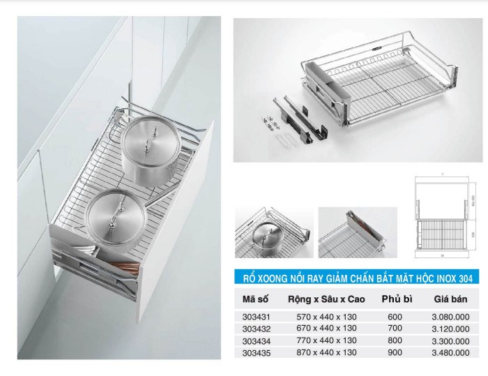 Rổ xoong nồi ray giảm chấn bắt mặt hộc inox 304 Higold 303431