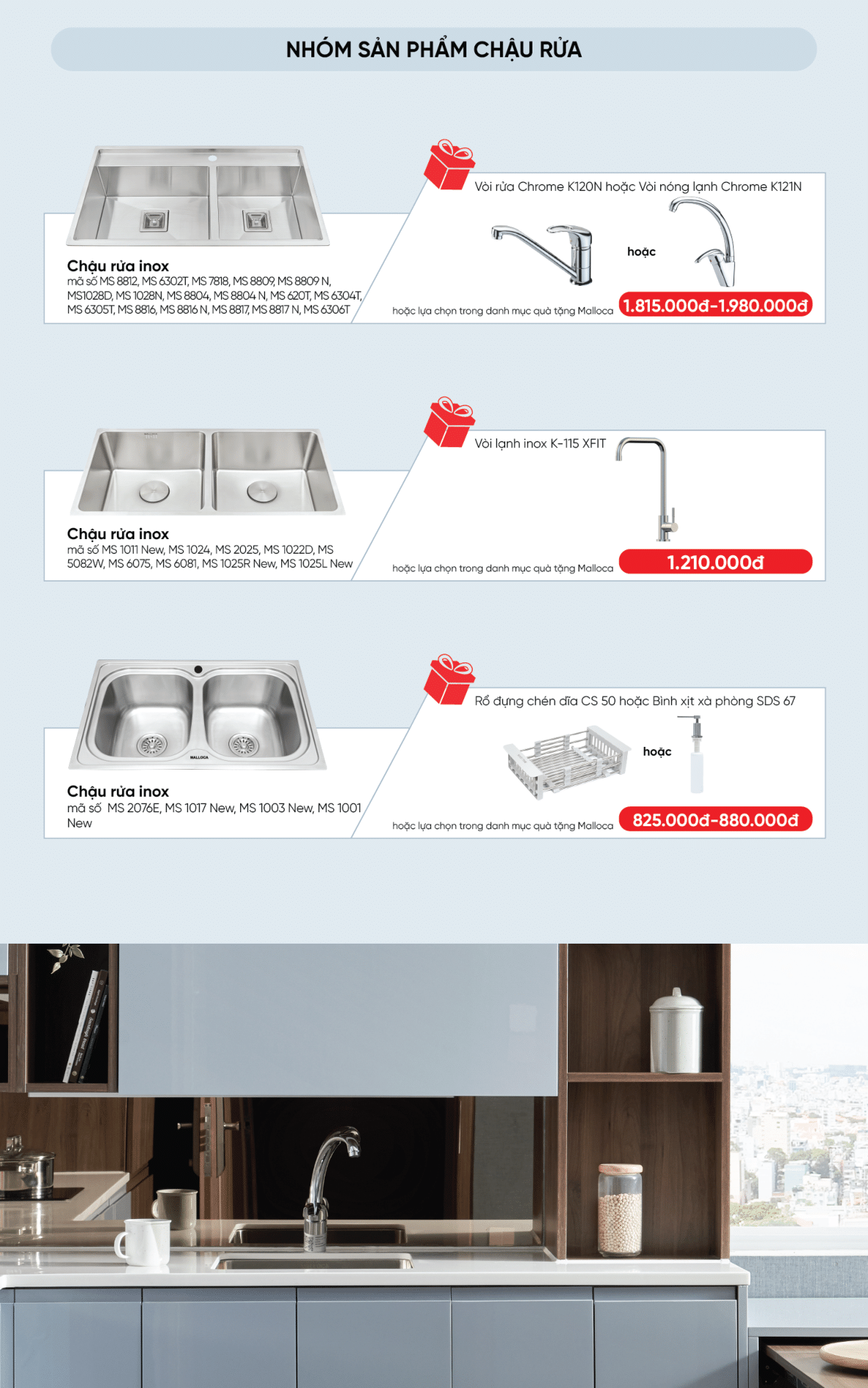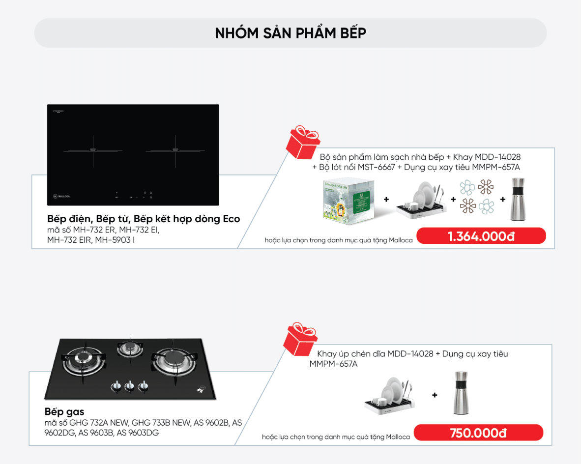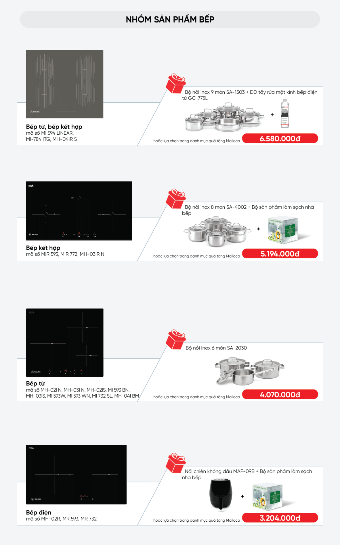 * Khuyến mãi nhóm sản phẩm bếp Malloca: