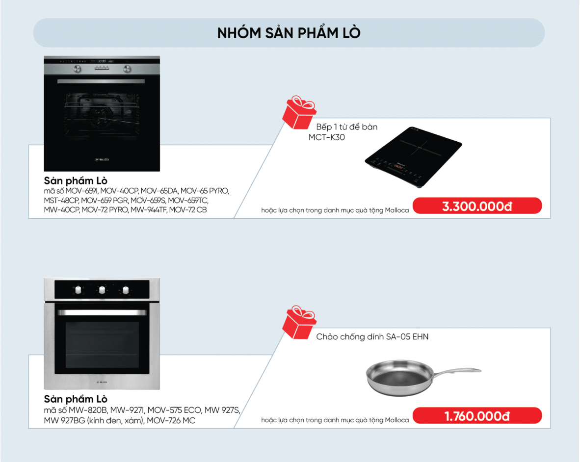 * Khuyến mãi nhóm sản phẩm lò Malloca: