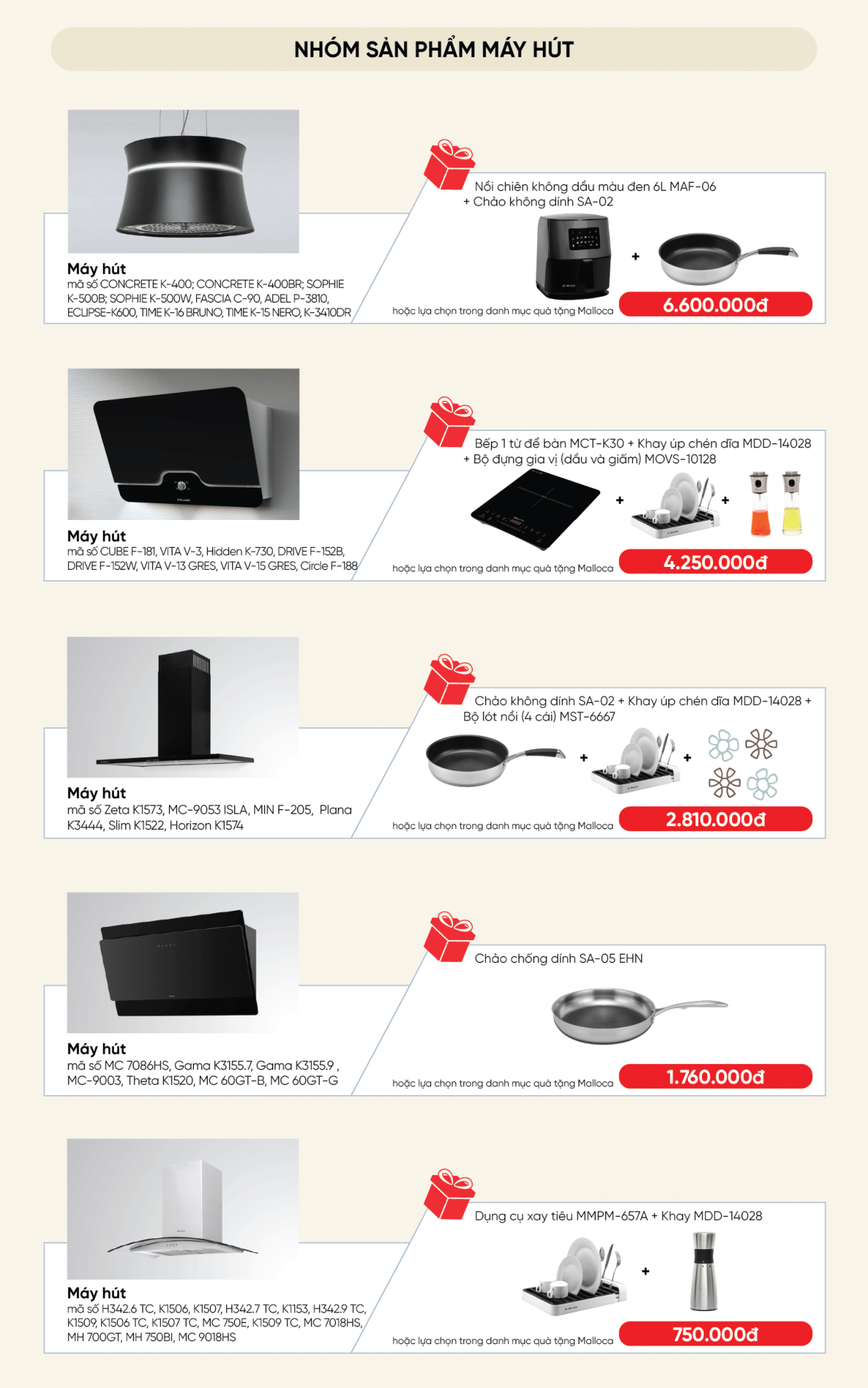 * Khuyến mãi nhóm sản phẩm máy hút mùi Malloca: