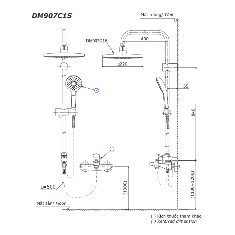 DM907C1S-TBG02302V-DGH108ZR kết hợp vòi xả bồn nóng lạnh kèm bát sen mạ với 5 chế độ massage.