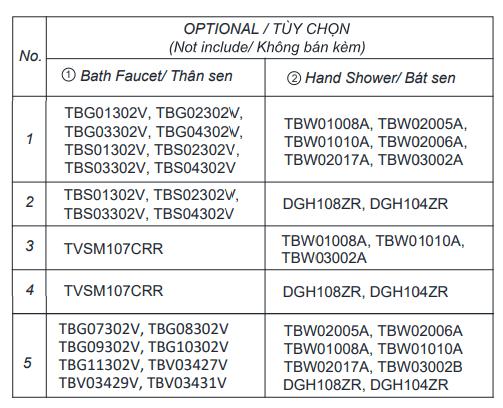 0.75 (MPa) (Áp dụng khi kết hợp sen cây với thân sen và bát sen theo bảng phía dưới