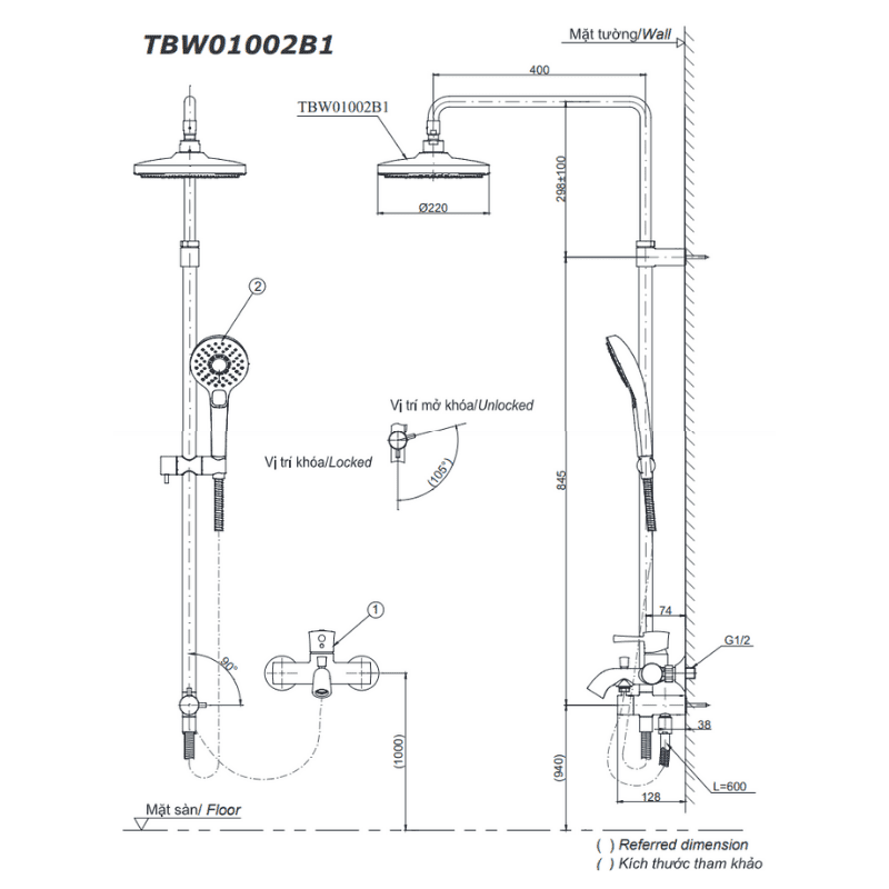 Áp lực tối thiểu: 0.05 (MPa) (Áp lực động)