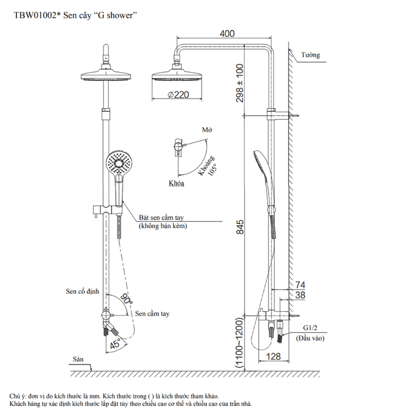 Thông số kỹ thuật của sen cây ToTo TBW01002B1/TBS01302V/TBW01010A: