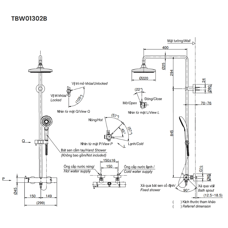 Thông số kỹ thuật của sen cây ToTo TBW01302B: