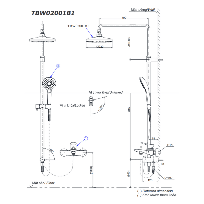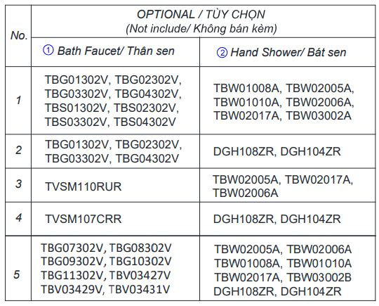 Thông số kỹ thuật của sen cây ToTo TBW02001B1: