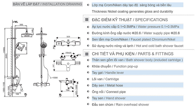 Thông tin chi tiết mẫu Sen tắm cây Inax BFV-3415T