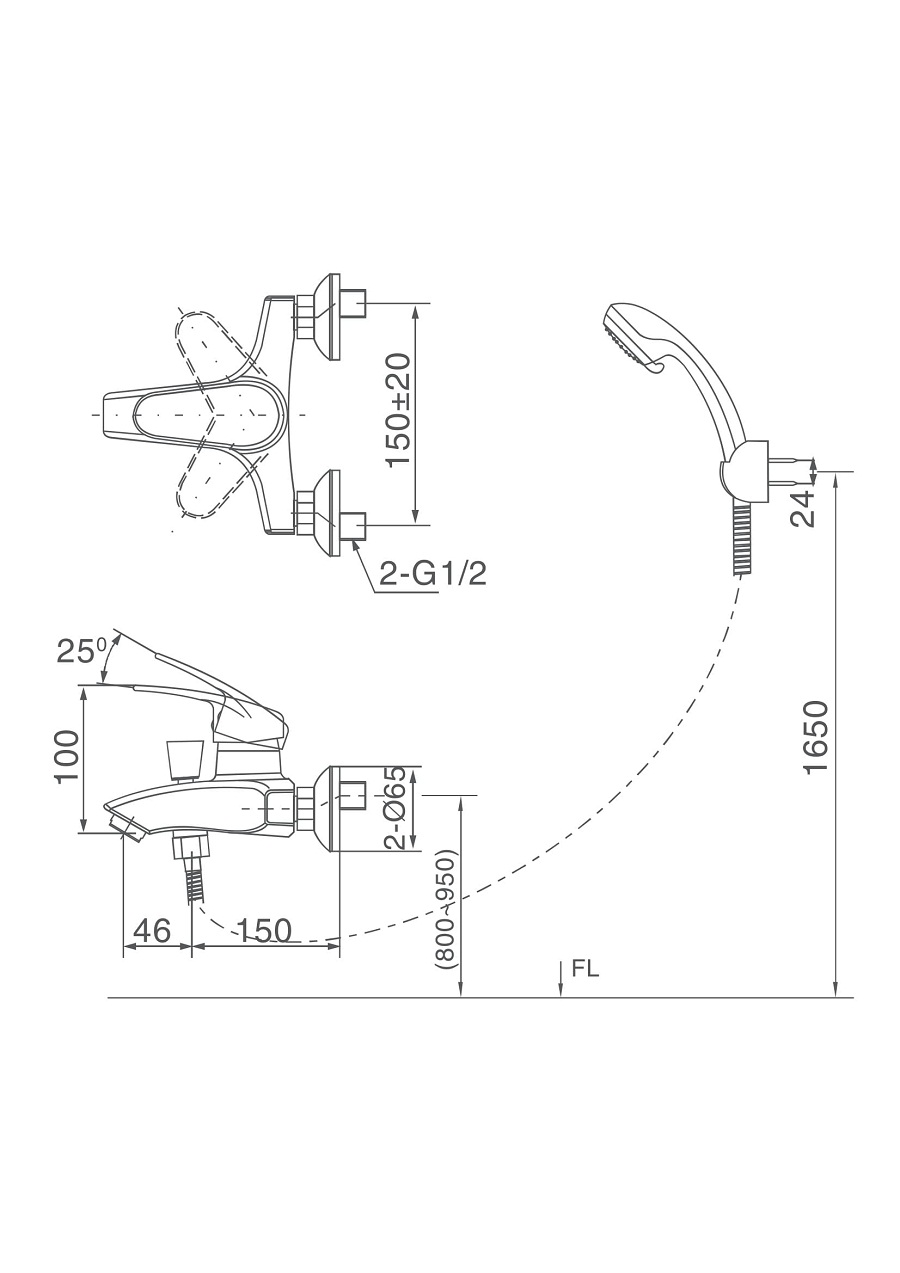 Bản vẽ kỹ thuật sen tắm Inax BFV-283S-3C