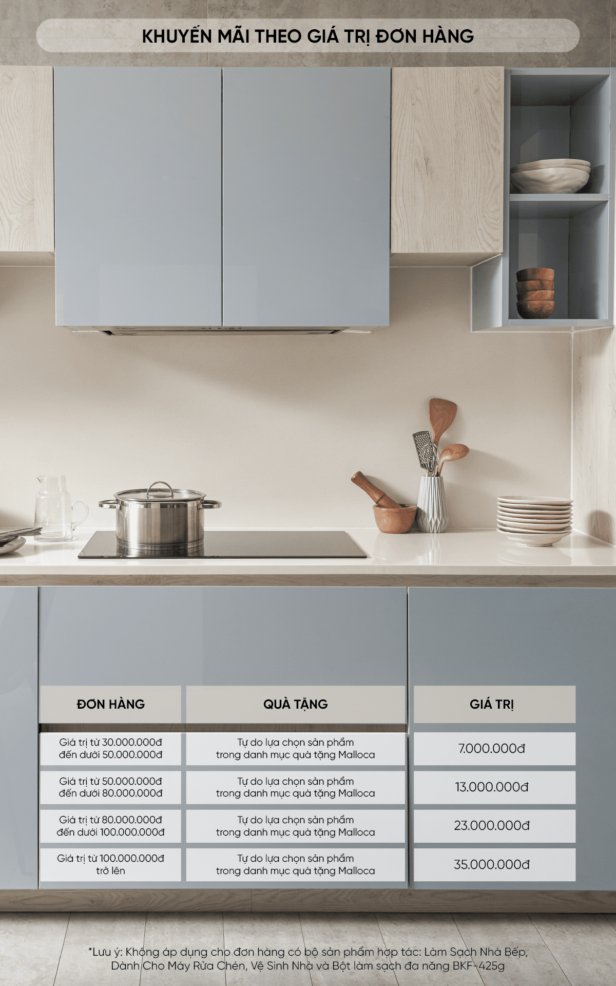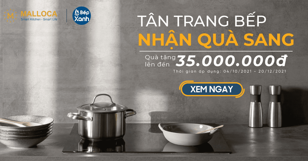 Chương trình khuyến mãi Malloca bắt đầu từ ngày 4/10/2021 đến hết 20/12/2021, áp dụng tại tất cả các showroom của Bếp XANH.