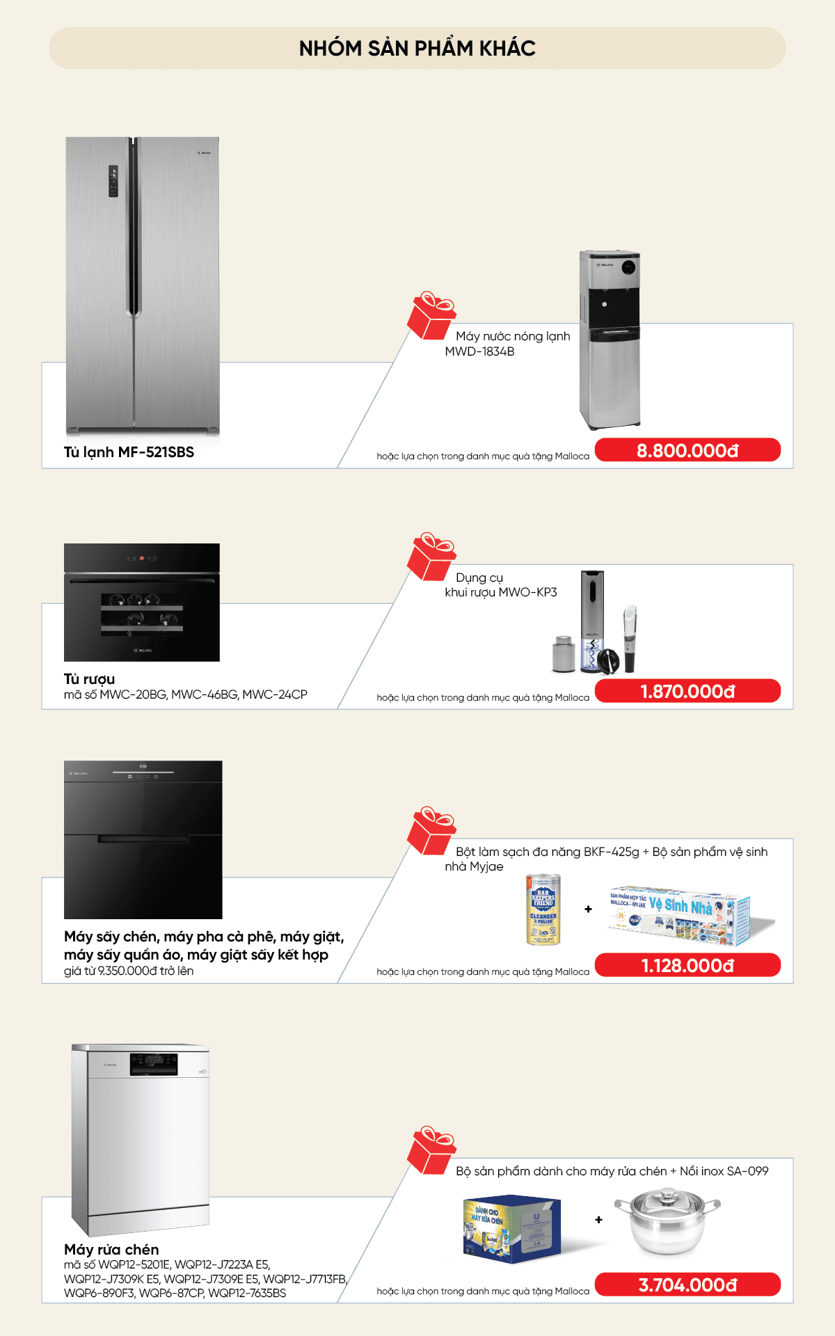 CÁC SẢN PHẨM ĐIỆN MÁY MALLOCA ĐANG KHUYẾN MÃI:
