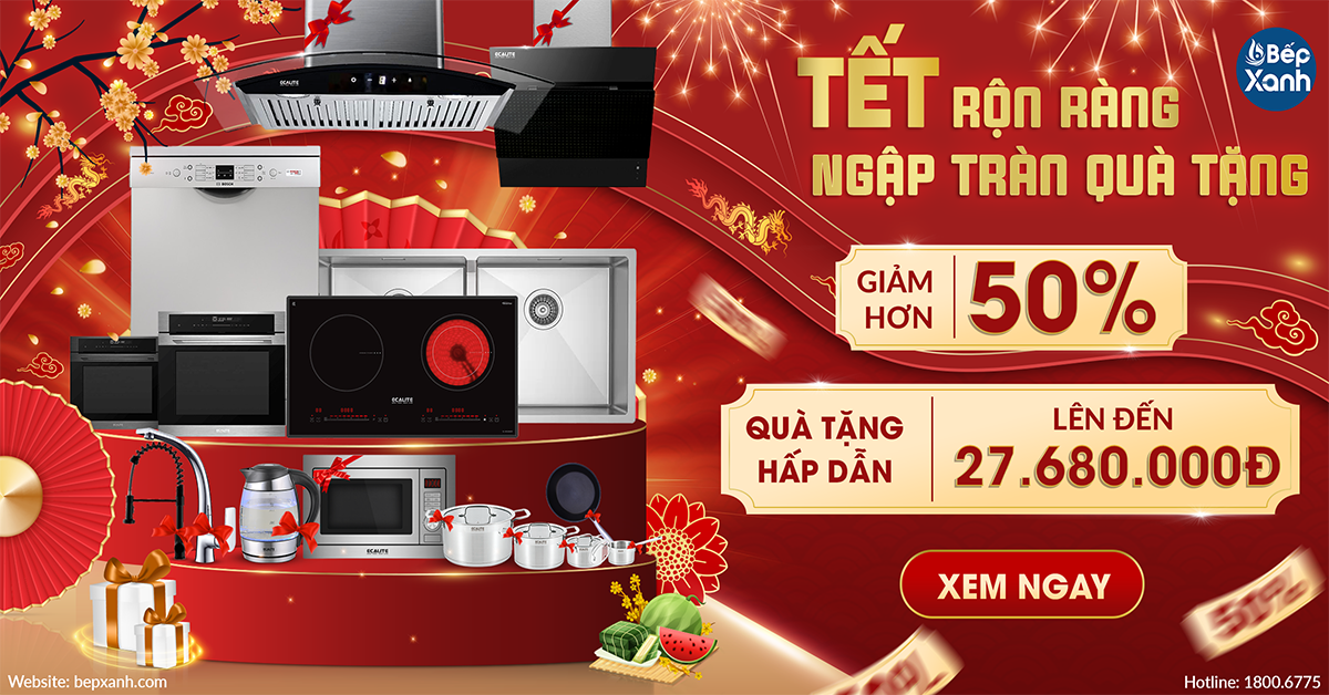 Từ tháng 1/2024, Bếp Xanh triển khai chương trình khuyến mãi hấp dẫn đón Xuân Giáp Thìn: "Tết Rộn Ràng - Ngập Tràn Quà Tặng". Đây là dịp đặc biệt để khách hàng mua sắm thiết bị bếp cho gia đình đón xuân với ưu đãi giảm hơn 50% cùng quà tặng trị giá tới 27.680.000đ.