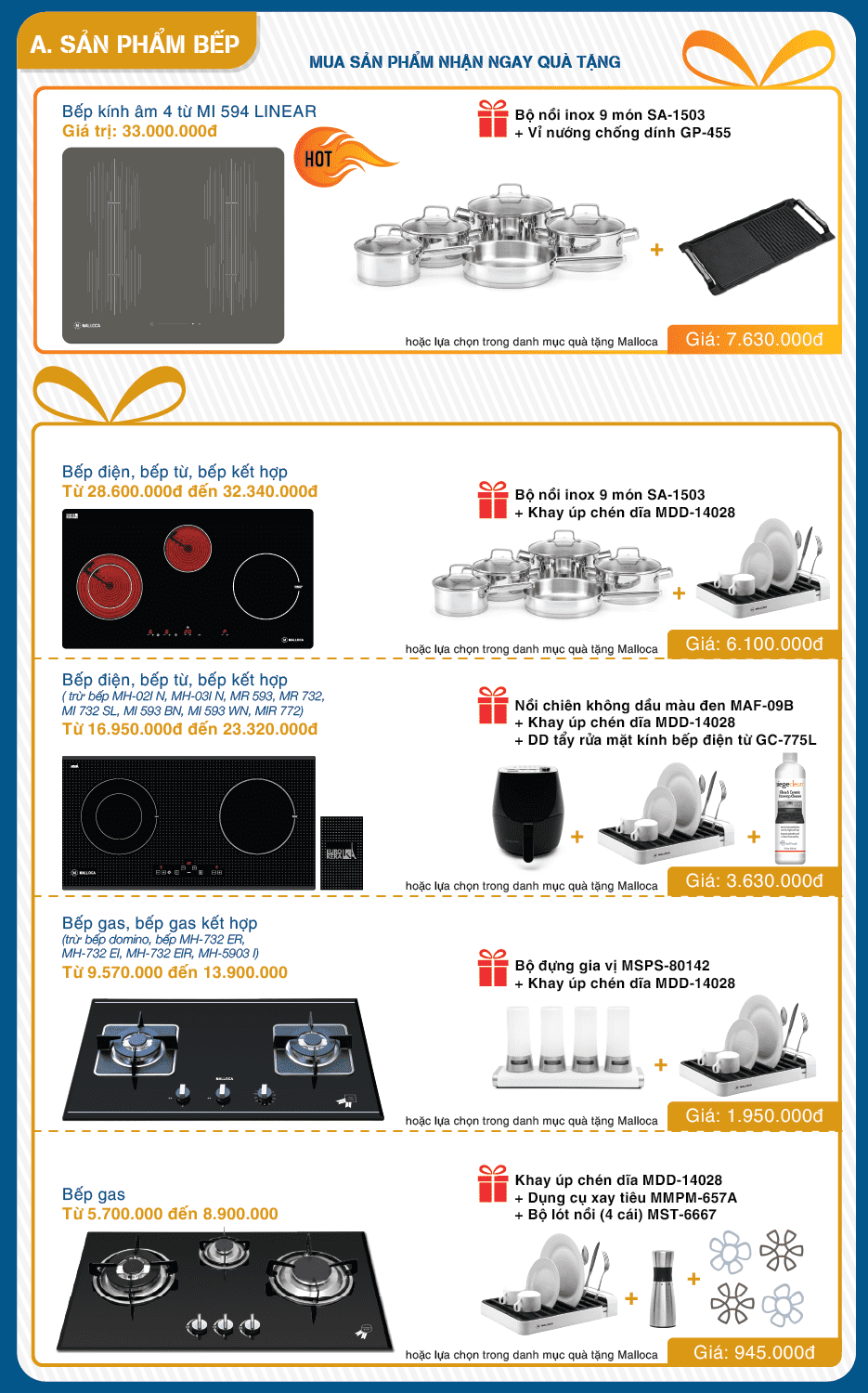 CÁC SẢN PHẨM BẾP GAS MALLOCA ĐANG KHUYẾN MÃI: