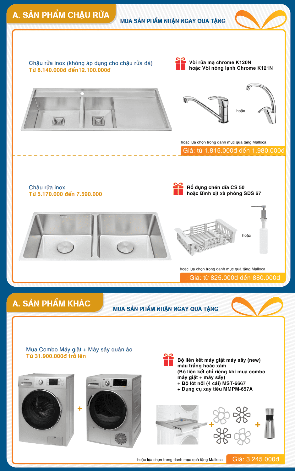 CÁC SẢN PHẨM CHẬU RỬA MALLOCA ĐANG KHUYẾN MÃI: