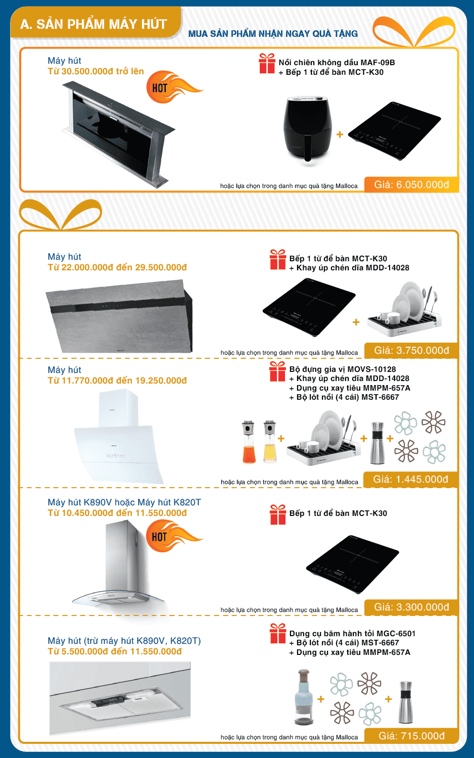 CÁC SẢN PHẨM HÚT MÙI MALLOCA ĐANG KHUYẾN MÃI