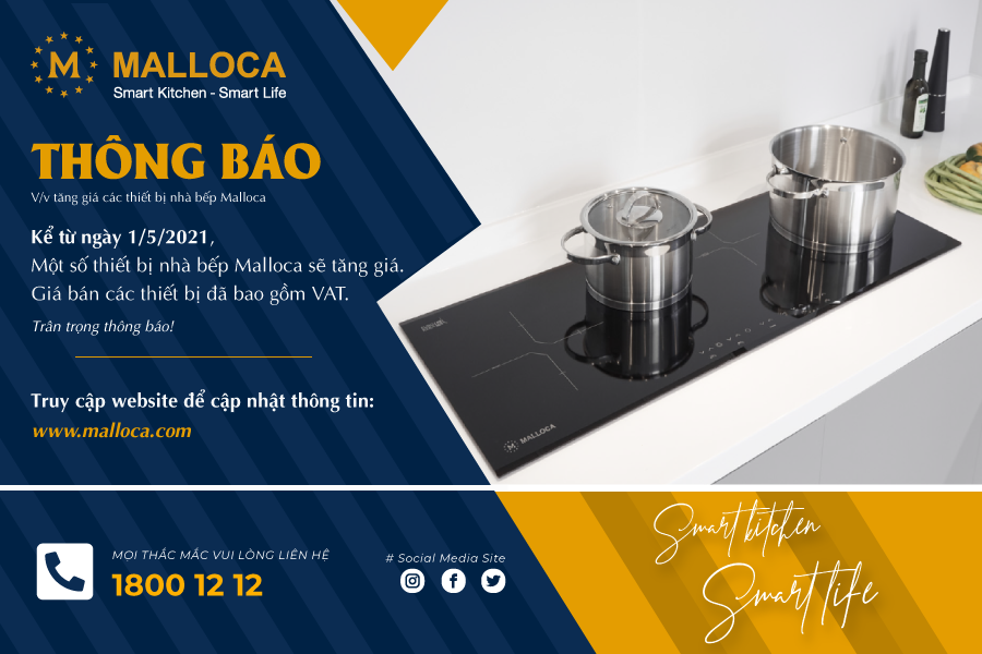 Trong những năm qua, các thiết bị nhà bếp Malloca luôn không ngừng cải tiến về công nghệ, nâng cao chất lượng sản phẩm và dịch vụ hậu mãi với giá thành hợp lý và bình ổn trong thời gian dài. Tuy nhiên, do tác động của dịch Covid-19, chi phí nhập khẩu thiết bị, logistic tăng mạnh; tỷ giá đồng USD biến đổi mạnh gây ảnh hướng đến giá đầu vào thiết bị nhà bếp Malloca.