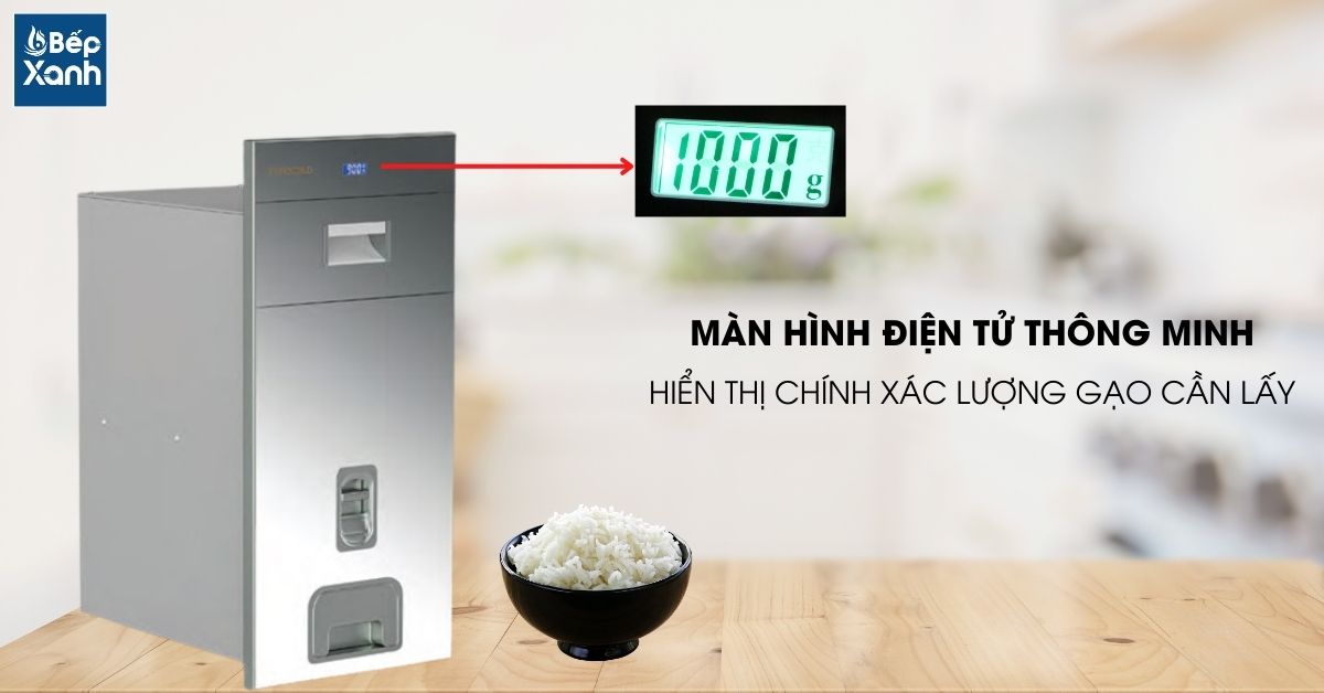 Sản phẩm được trang bị nút nhấn xả gạo rất tiện lợi, chỉ cần một thao tác ấn nhẹ nút là bạn sẽ có ngay lượng gạo cần dùng một cách nhanh chóng. Chế độ đong gạo tự động tương đương với lượng gạo 50 - 1000g giúp ước lượng được số gạo vừa đủ cần nấu để tránh tình trạng thừa hoặc thiếu cơm gây lãng phí.