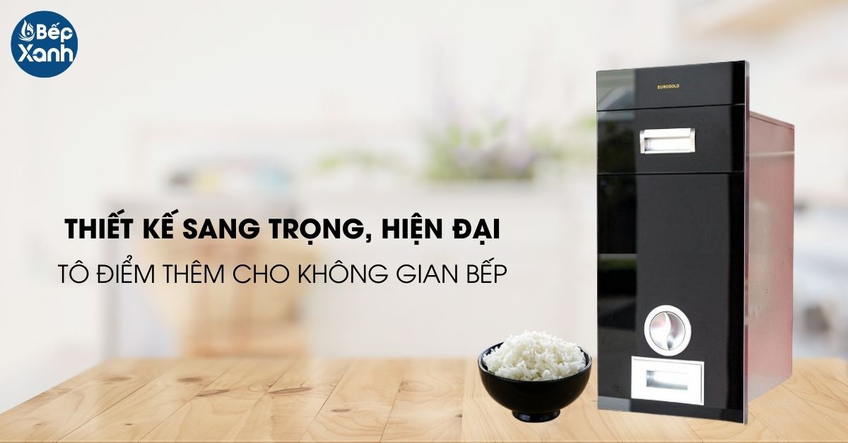 Với thiết kế inox cùng mặt kính gương đen sản phẩm thùng gạo gương Eurogold C300 sẽ trở thành điểm nhấn vẻ ngoài sáng bóng, nâng tầm sang trọng, hiện đại cho căn bếp. Dù cho tủ bếp của bạn làm bằng chất liệu gỗ màu trắng hay màu tối thì sản phẩm thùng gạo thông minh đều có thể hòa hợp, đồng bộ với nhau. Sản phẩm này không chỉ đơn thuần là thùng đựng gạo đơn giản mà nó còn trở thành phụ kiện trang trí để nâng tầm vẻ đẹp trong căn bếp.