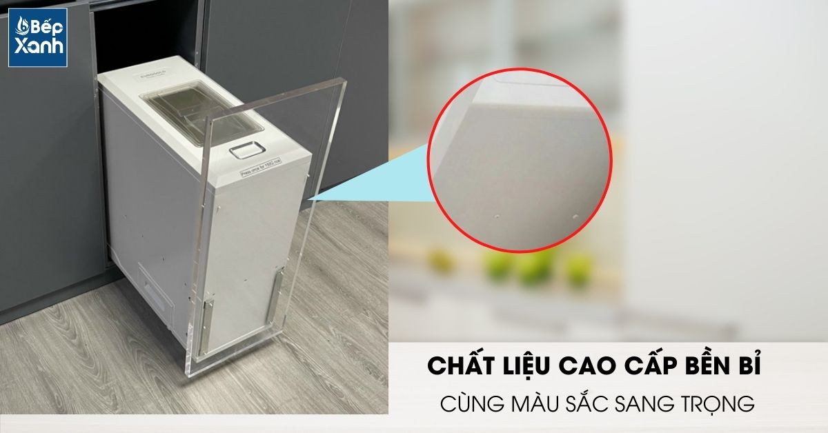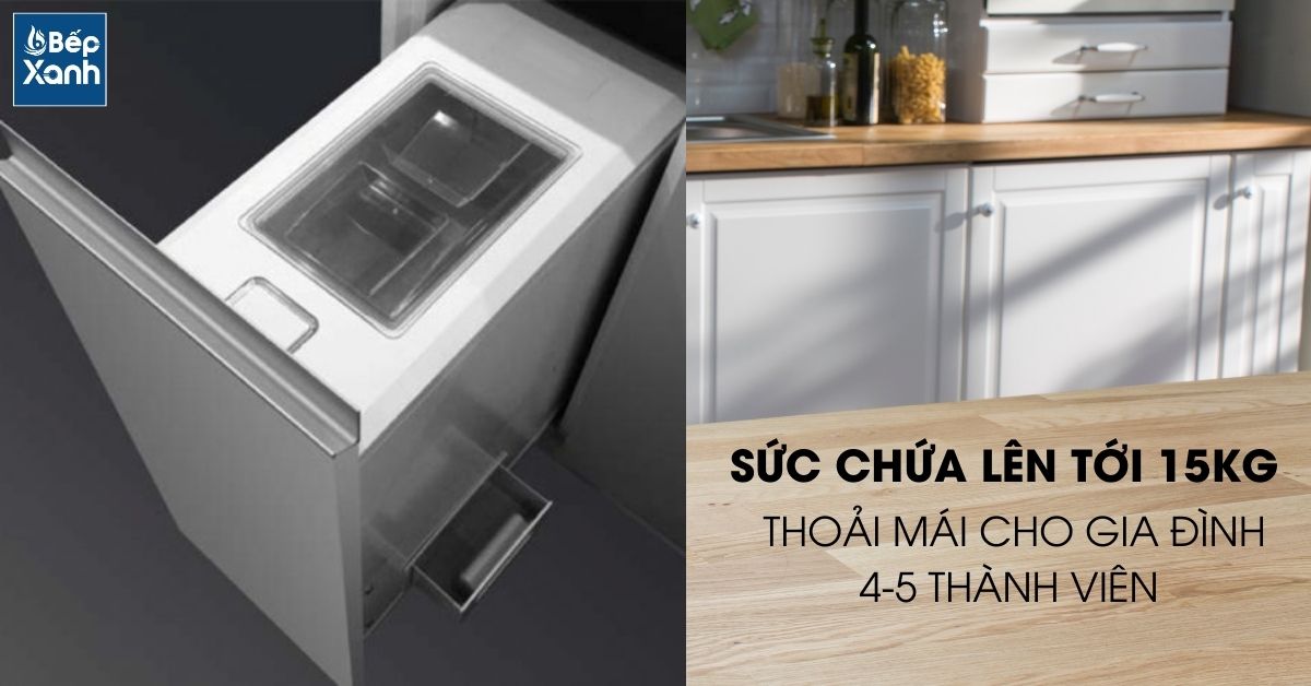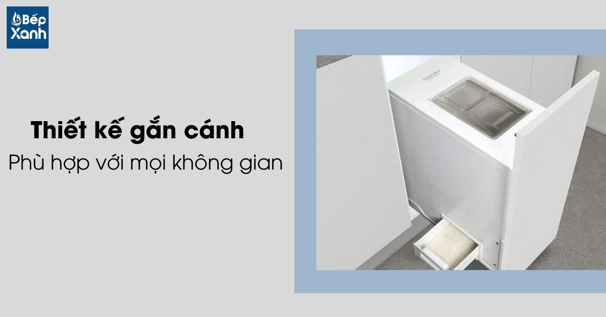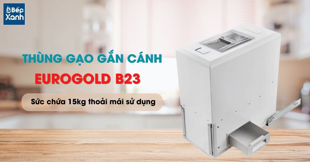 Thùng gạo gắn cánh Eurogold B23 được thiết kế gắn cánh hiện đại, nhỏ gọn, lắp âm tủ hẳn vào trong tủ bếp. Chỉ cần kéo nhẹ nhàng cánh tủ bếp ra là sản phẩm sẽ trượt nhẹ nhàng ra ngoài cùng với ray giảm chấn giúp giảm tiếng ồn. Đây là một trong những sản phẩm có kích thước nhỏ gọn và giá thành phù hợp với nhiều gia đình. Hãy cùng Bếp XANH điểm qua những đặc điểm nổi bật của sản phẩm trong bài viết dưới đây nhé!