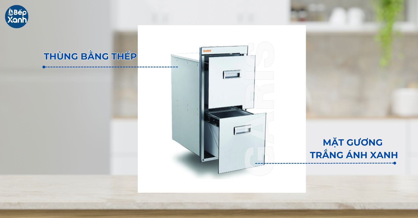 Mặt thùng gạo được làm bằng gương trắng ánh xanh cực đẹp, tạo nên điểm nhấn thẩm mỹ tinh tế cho không gian bếp. Gương trắng không chỉ làm tăng vẻ đẹp sang trọng mà còn giúp bạn dễ dàng quan sát lượng gạo còn lại bên trong. Với thùng gạo Garis GR07.30W, mỗi lần sử dụng sẽ là một trải nghiệm thẩm mỹ và tiện ích.