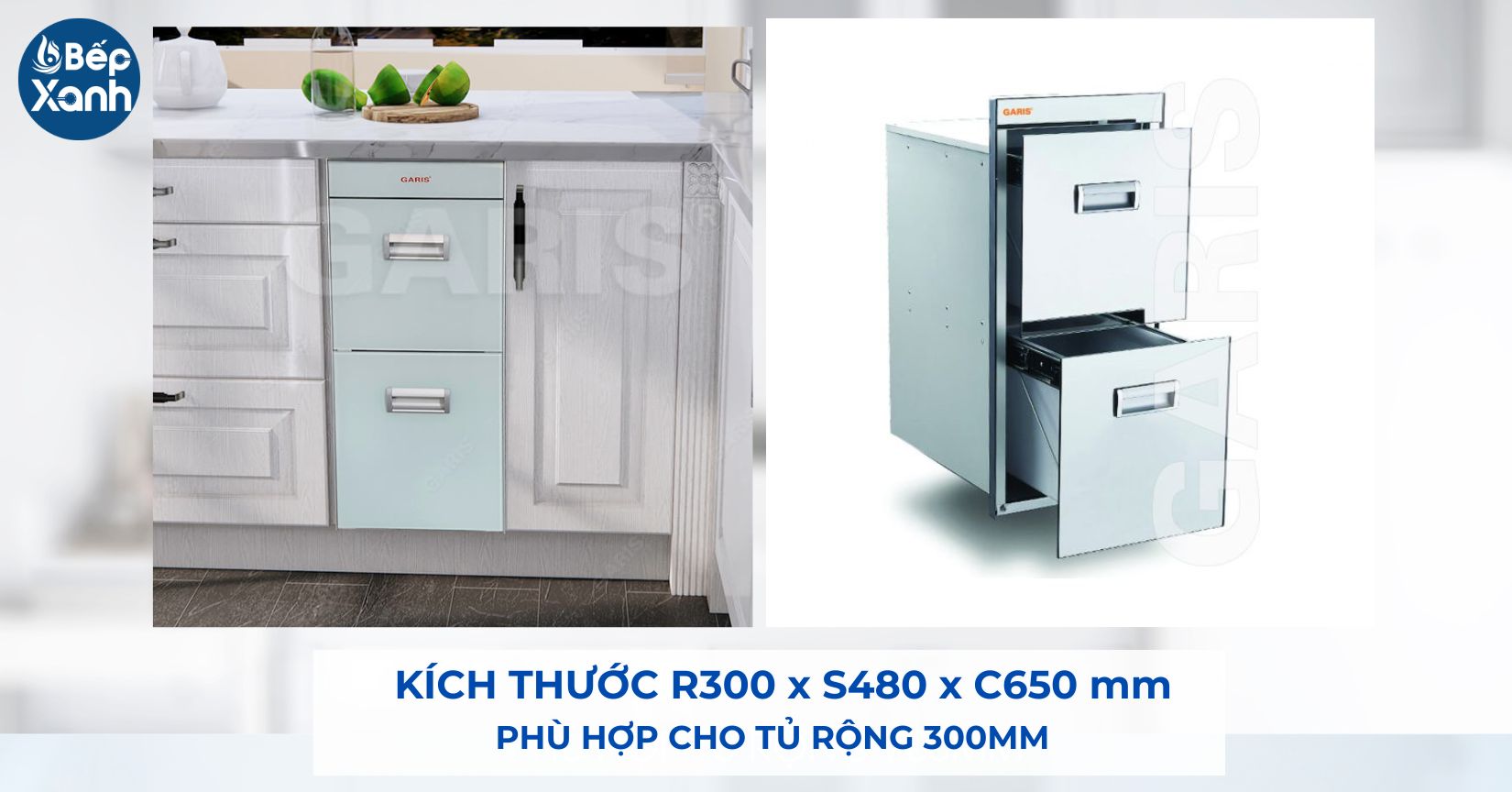 Thùng gạo thông minh Garis GR07.30W được thiết kế với kích thước phù hợp cho các tủ bếp rộng 300mm, giúp dễ dàng lắp đặt mà không cần phải điều chỉnh hay sửa đổi tủ bếp hiện có. Điều này mang lại sự tiện lợi tối đa cho người sử dụng, đặc biệt là trong các không gian bếp có diện tích hạn chế.