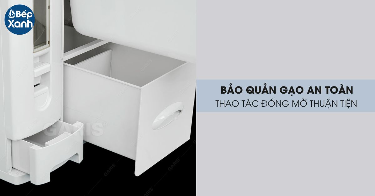 Thùng gạo thông minh là một trong những phụ kiện nhà bếp cần thiết để bảo quản gạo vệ sinh và an toàn hơn, tránh ẩm mốc, côn trùng xâm hại gây ảnh hưởng sức khỏe. Hãy cùng Bếp Xanh tìm hiểu chi tiết về thùng gạo thông minh 3 khoang Garis GR09.45 để biết được những tính năng vượt trội của sản phẩm này nhé!