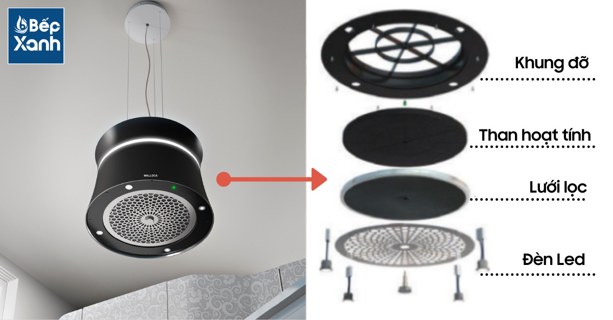 Đặc biệt, một số dòng máy hút mùi đảo decor của Malloca còn được trang bị hệ thống lọc-khử mùi Crisalide thế hệ mới, cấu tạo bởi 4 lớp: đèn Led - lưới lọc - than hoạt tính - khung đỡ đem lại hiệu quả khử mùi vượt trội hơn 70% so với các sản phẩm khác trên thị trường.