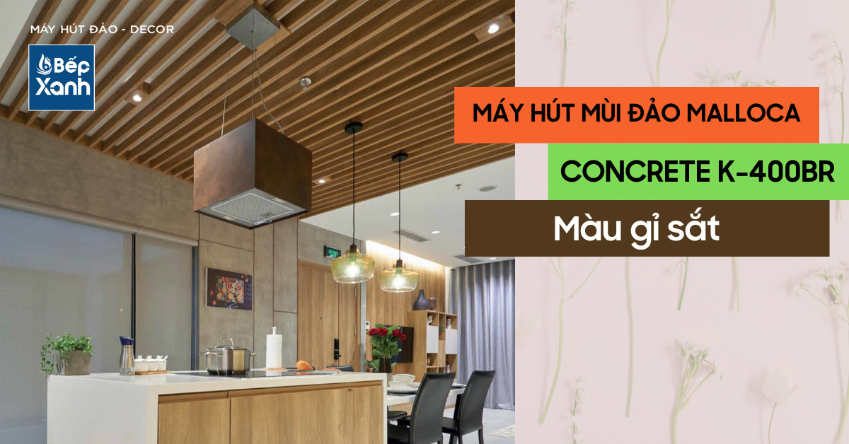 Máy khử mùi đảo Malloca Conrete K-400BR với màu gỉ sắt độc đáo