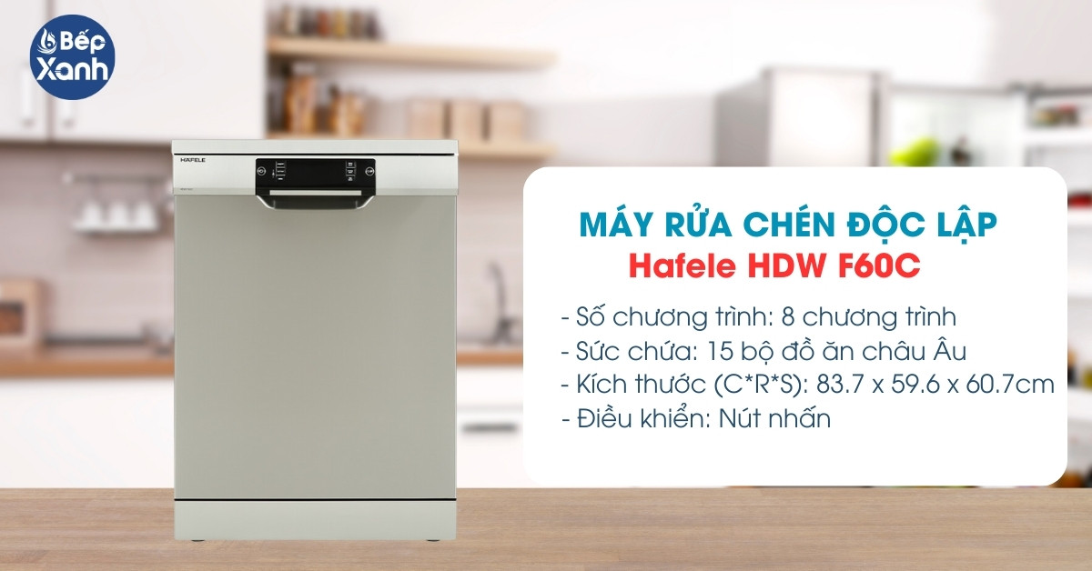 Hafele HDW F60C sở hữu công suất rửa lớn đến 1900W kết hợp với công nghệ rửa nước nóng sẽ rửa sạch các vết bẩn, dầu mỡ trên chén đĩa, đem lại sự sáng bóng, sạch khuẩn cho đồ dùng. Với sức chứa 15 bộ đồ ăn châu Âu, máy phục vụ tốt cho gia đình 3-5 thành viên (tương đương 3-4 người Việt). Sản phẩm dễ sử dụng với điều khiển nút nhấn và màn hình LED trực quan, 8 chương trình rửa đa dạng đáp ứng nhiều nhu cầu của người dùng.