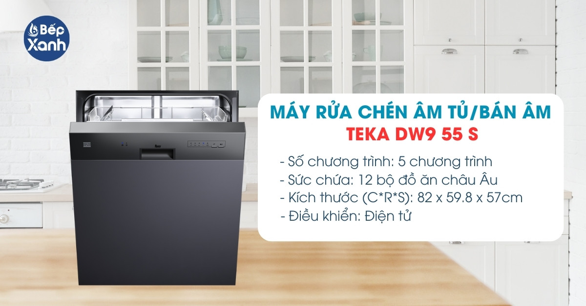 Máy rửa bát Teka DW9 55 S được nhập khẩu nguyên chiếc từ Italy là sản phẩm tiếp theo góp mặt trong danh sách top máy rửa bát tốt nhất. Thiết kế máy có thể vừa lắp âm trong tủ bếp hoặc lắp bán âm đều phù hợp tùy vào sở thích và vị trí lắp đặt của mỗi gia đình. Sản phẩm có thể rửa tốt 3-4 bữa ăn của người Việt (12 bộ chén đĩa châu Âu).