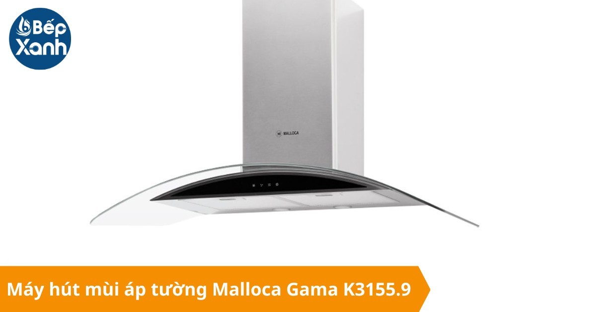 Máy hút mùi áp tường Malloca Gama K3155.9 thiết kế kính cong đẹp mắt