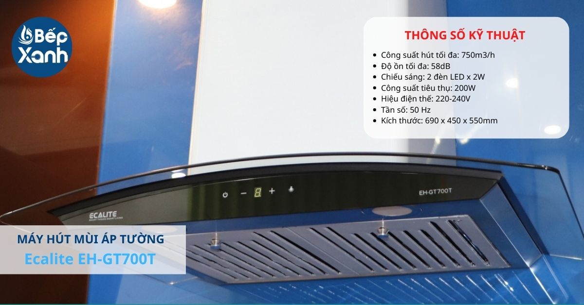 Nếu bạn đang phân vân máy hút mùi kính cong loại nào tốtnhấtcho gia đình thì Ecalite EH-GT700T là sự lựa chọn hoàn hảo. Bởi vì không những mang lại hiệu quả khử mùi tốt mà máy còn có trang bị bảng điều khiển cảm ứng kết hợp với màn hình LED hiển thị, hệ thống đèn chiếu sáng hỗ trợ cho quá trình nấu nướng được thuận tiện hơn.
