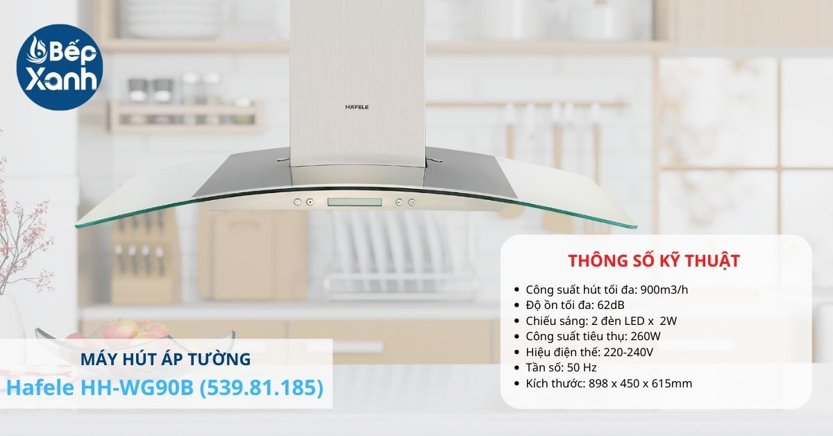 Máy hút mùi Hafele HH-WG90B (539.81.185) có xuất xứ từ Ba Lan được thiết kế hiện đại, mặt kính cong kết hợp với phần thân máy inox khiến sản phẩm trở nên sáng bóng và sang trọng. Kích thước chiều ngang là 90cm dễ kết hợp với các bếp nấu từ 3 đến 4 vùng nấu, đồng thời giúp sản phẩm trở nên nổi bật trong không gian nhà bếp.
