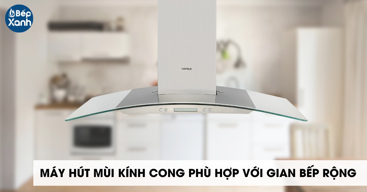 Thiết kế hút mùi kính cong phù hợp với các không gian bếp lớn