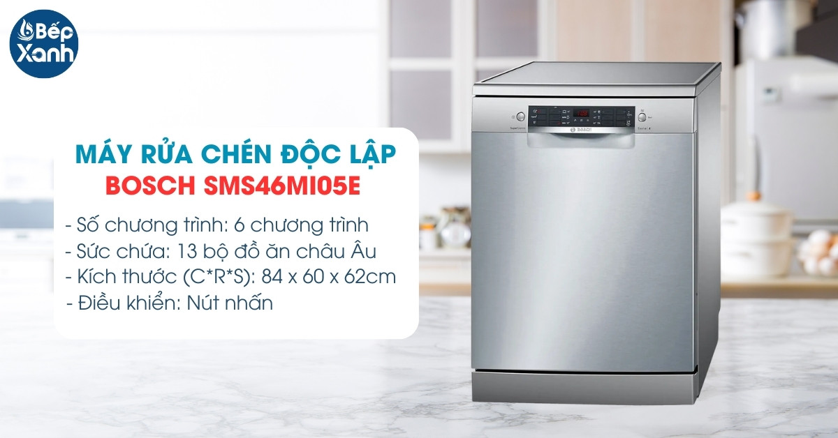 Bosch SMS46MI05E có sức chứa lên đến 13 bộ đồ ăn châu Âu đáp ứng 3-4 bữa ăn của người Việt, là lựa chọn phù hợp cho gia đình 4 - 6 thành viên. Ngoài ra, thiết bị sử dụng bảng điều khiển nút cơ hiển thị trực quan tích hợp 6 chương trình rửa giúp người dùng lựa chọn các chương trình phù hợp theo nhu cầu. Đặc biệt, chức năng rửa diệt khuẩn trên máy giúp loại bỏ mảng bám bẩn và vi khuẩn gây hại, nhờ đó bảo vệ sức khoẻ cho gia đình bạn.