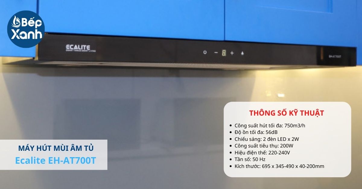 Máy hút mùi âm tủ Ecalite sở hữu công suất hút cao