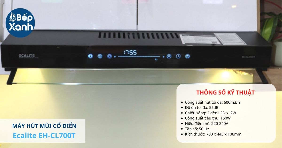 Hút mùi cổ điển Ecalite với chiều ngang máy 70cm