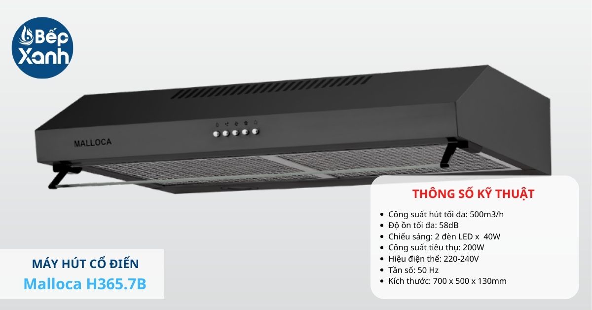Nếu bếp nhà bạn có vùng nấu khoảng 2 đến 3 vùng thì Malloca H107W là lựa chọn phù hợp cho gia đình bạn. Máy hút mùi cổ điển sở hữu công suất hút 350m3/h với 3 tốc độ hút cho người dùng điều chỉnh phù hợp với nhu cầu sử dụng. Nếu nấu nướng với những món hấp, luộc đơn giản thì có thể chọn mức 1 hoặc 2 còn đối với các món chiên xào nấu thì chọn mức 3 để việc hút khử mùi được hiệu quả nhất.