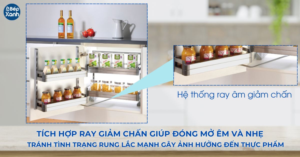 Hệ thống ray giảm chấn còn giúp bảo vệ thực phẩm bên trong, tránh tình trạng rung lắc mạnh gây ảnh hưởng đến chất lượng thực phẩm. Đây thực sự là một tính năng vượt trội, mang lại sự tiện nghi và an toàn cho người sử dụng.