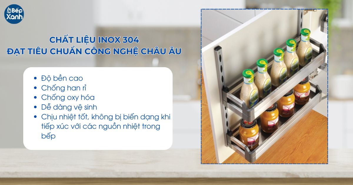 - Chất liệu inox SUS 304 siêu bền, chống gỉ sét, sử dụng lâu dài