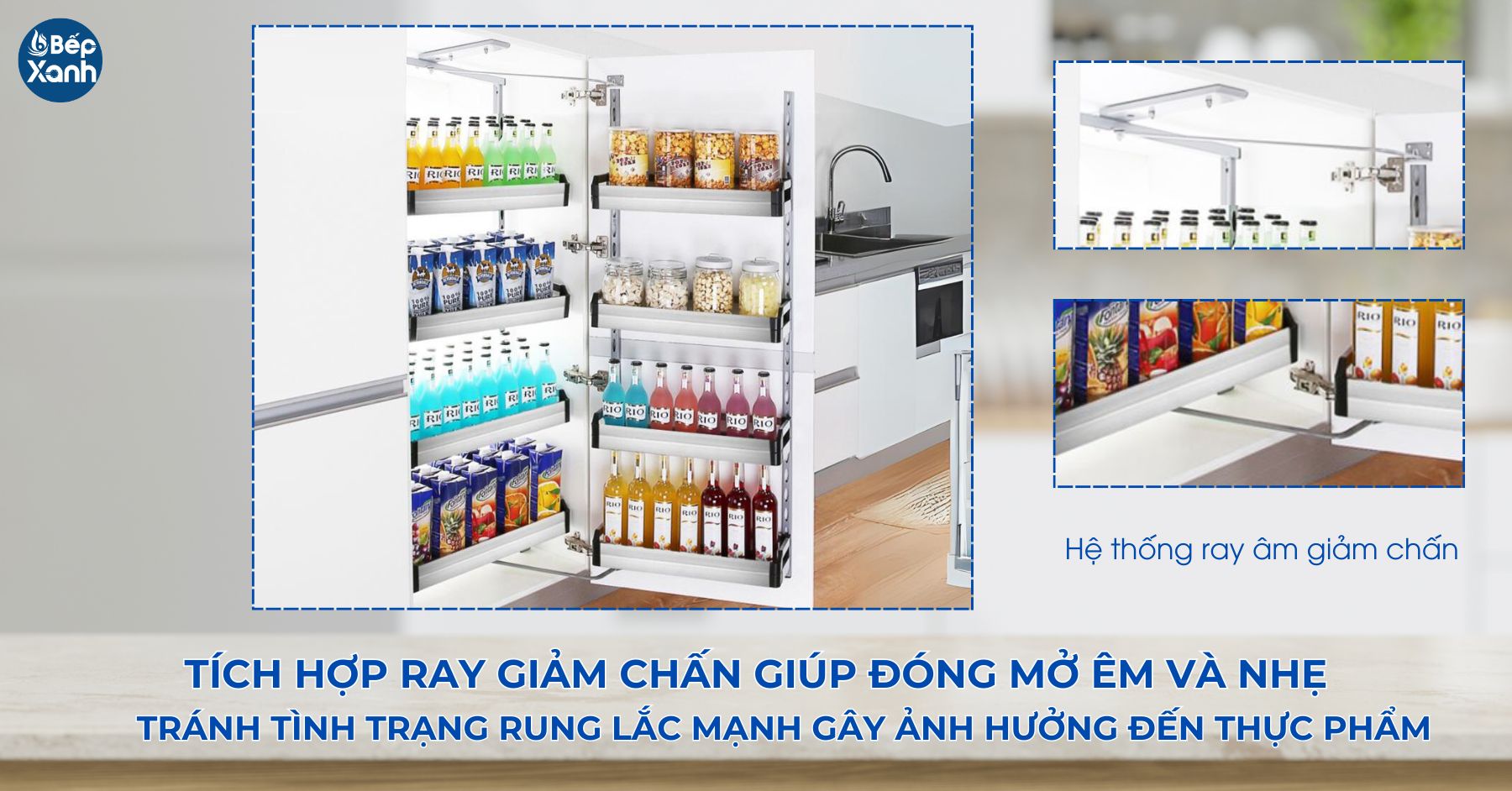 Trang bị ray âm giảm chấn đóng mở êm và nhẹ nhàng