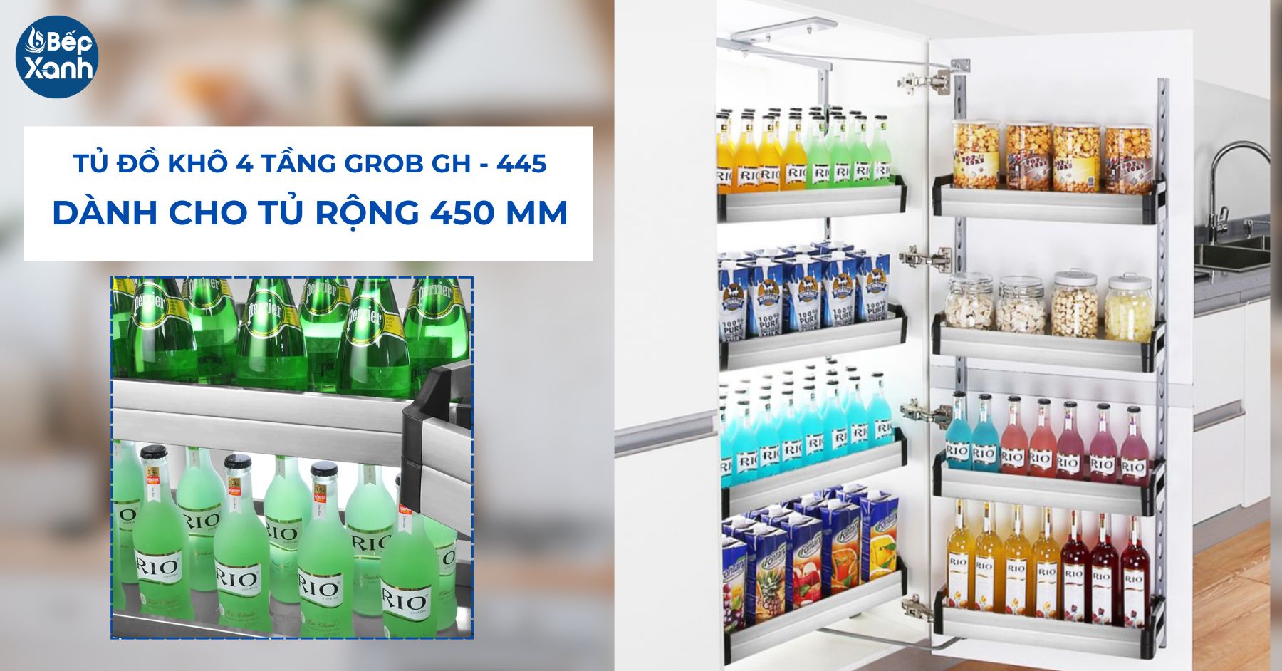 Tủ đồ khô 4 tầng Grob GH - 445 là sản phẩm hoàn hảo cho những ai muốn nâng cấp không gian bếp của mình. Với thiết kế lắp đặt âm tủ hiện đại, chất liệu inox sus304 siêu bền, hệ thống ray giảm chấn êm ái và khả năng bảo quản thực phẩm hiệu quả, sản phẩm này không chỉ mang lại sự tiện nghi mà còn giúp không gian bếp trở nên sang trọng và gọn gàng hơn. Hãy chọn Grob GH - 445 để tận hưởng những tiện ích và chất lượng tuyệt vời mà sản phẩm mang lại.