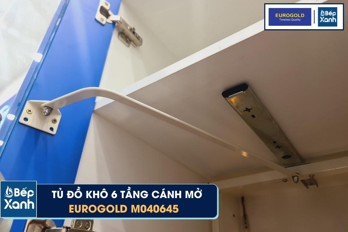 Ngoài bản lề cửa, hãng Eurogold cũng trang bị cho tủ đồ khô M040645 2 trục xoay bắt vào cánh tủ, giúp khay trong và khay ngoài có thể chuyển động theo cánh tủ đóng vào/mở ra thuận tiện. Bản lề trên của tủ đồ khô