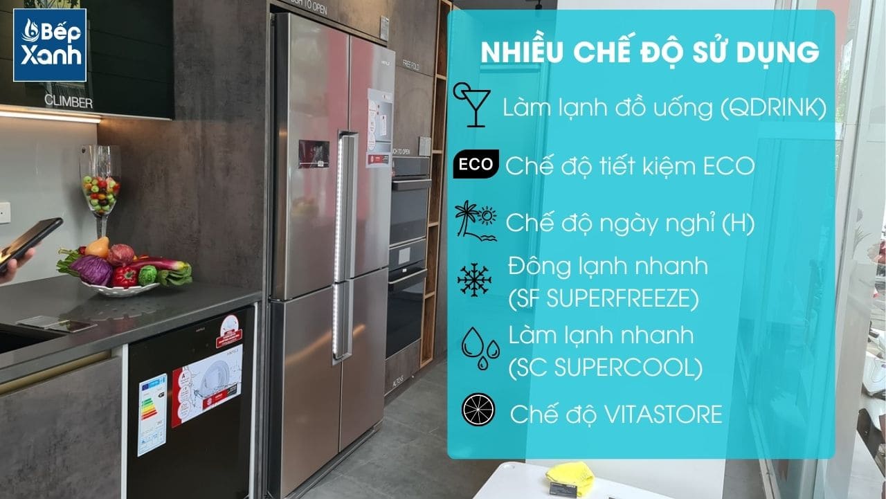 Tủ lạnh 4 cánh Hafele HF-SBSIB 539.16.230 gồm các chế độ sử dụng hữu ích như: