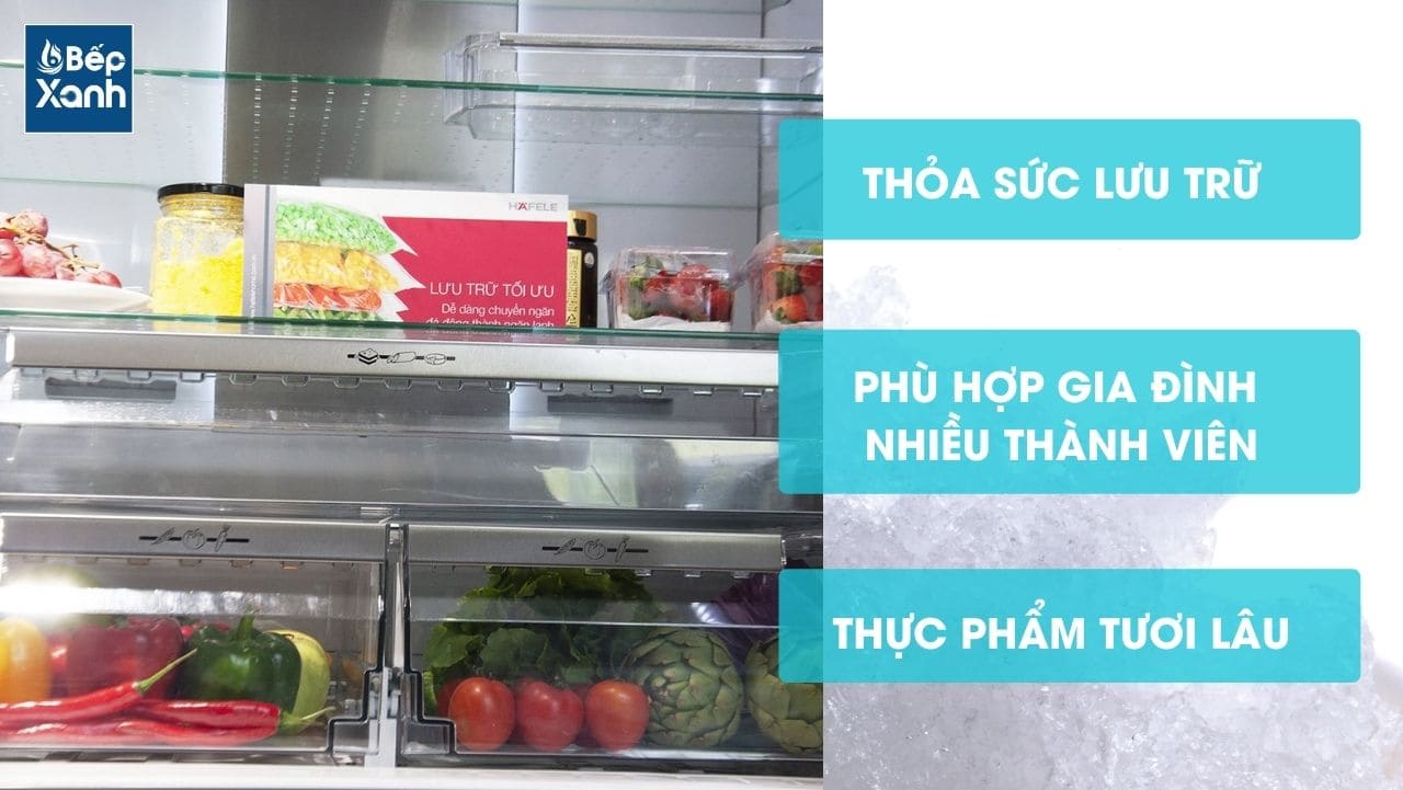 Với gia đình nhiều thành viên hoặc có tần suất nấu ăn cao thì HF-SBSIB 539.16.230 là mẫu tủ lạnh Hafele hoàn hảo. Tủ đáp ứng nhu cầu lưu trữ và bảo quản số lượng lớn, đảm bảo độ tươi ngon và tiết kiệm thời gian đi chợ mỗi ngày.