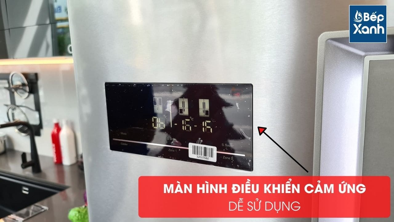 Bảng điều khiển đặt ngay bên trái cửa tủ, vừa tầm tay tiện lợi cho mọi thao tác. Với màn hình này, bạn sẽ quan sát được nhiệt độ của các ngăn, đồng thời tinh chỉnh và lựa chọn các chế độ phù hợp với nhu cầu sử dụng của gia đình. Bên cạnh đó, màn hình cũng có chức năng khóa an toàn, tránh trường hợp trẻ em chạm tay thay đổi các chương trình của tủ.
