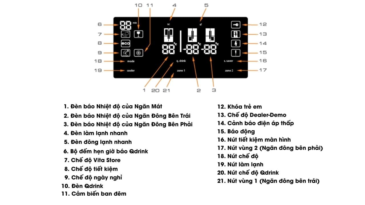 - Chế độ VITASTORE: Giúp hoa quả và rau củ luôn tươi ngon và duy trì vitamin cũng như giá trị dinh dưỡng bằng cách duy trì điều kiện nhiệt độ và độ ẩm lý tưởng.