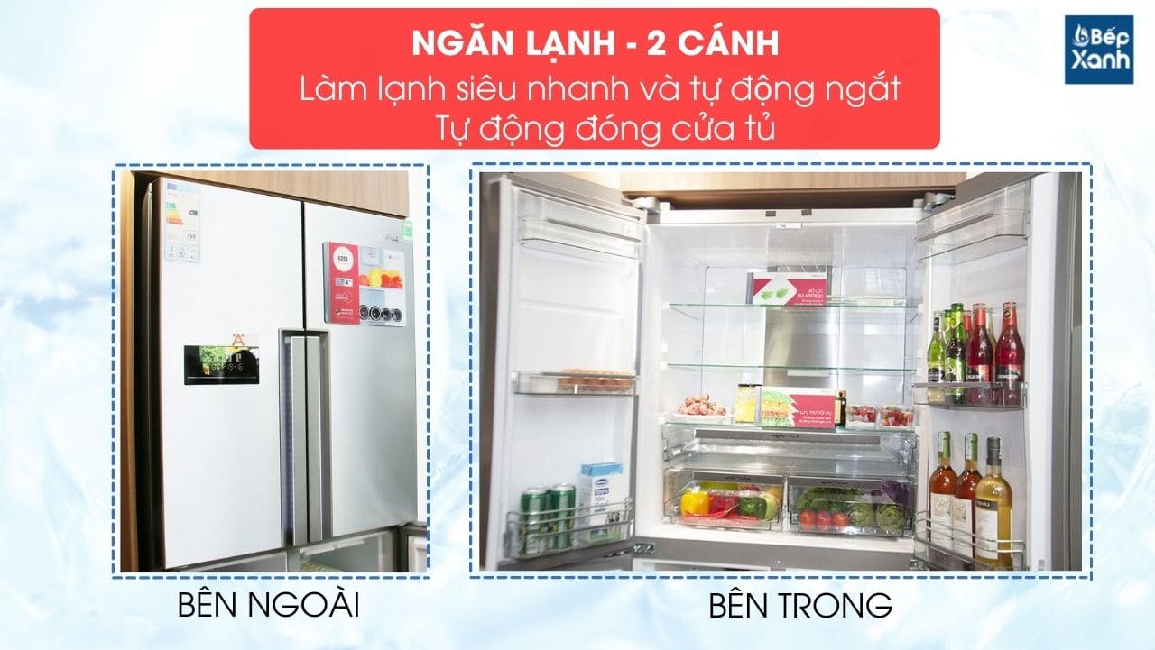 Ngăn lạnh trang bị hệ thống khí đa chiều với quạt bên trong, làm lạnh cực nhanh và tự động ngắt khi đạt đủ nhiệt độ được cài đặt. Bạn có thể chỉnh nhiệt độ từ 2-8 độ C.