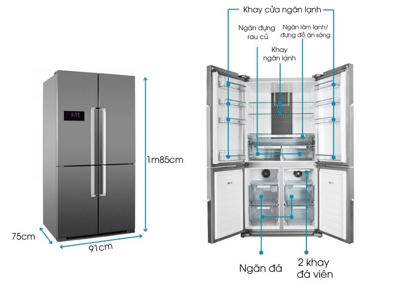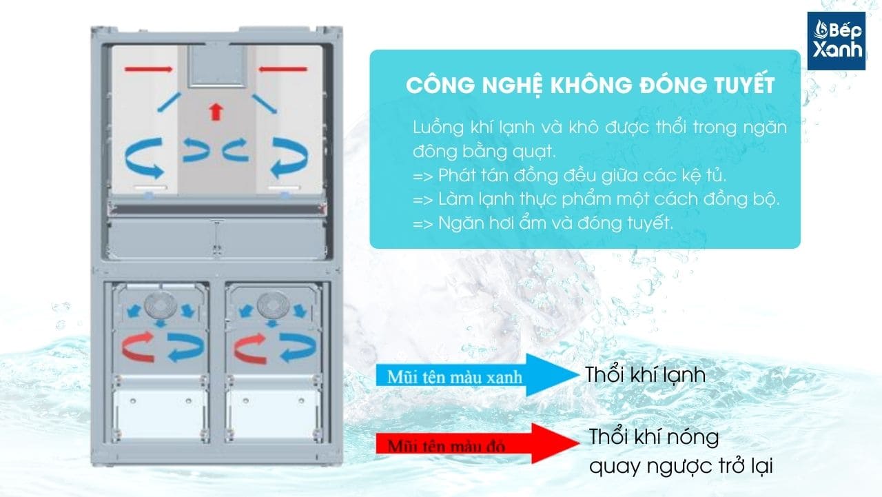 - Trang bị nhiều quạt bên trong: Làm lạnh đa chiều, cho hơi lạnh lan tỏa đồng đều khắp các ngăn tủ. Đảm bảo giữ thực phẩm luôn tươi ngon, sử dụng lâu dài.